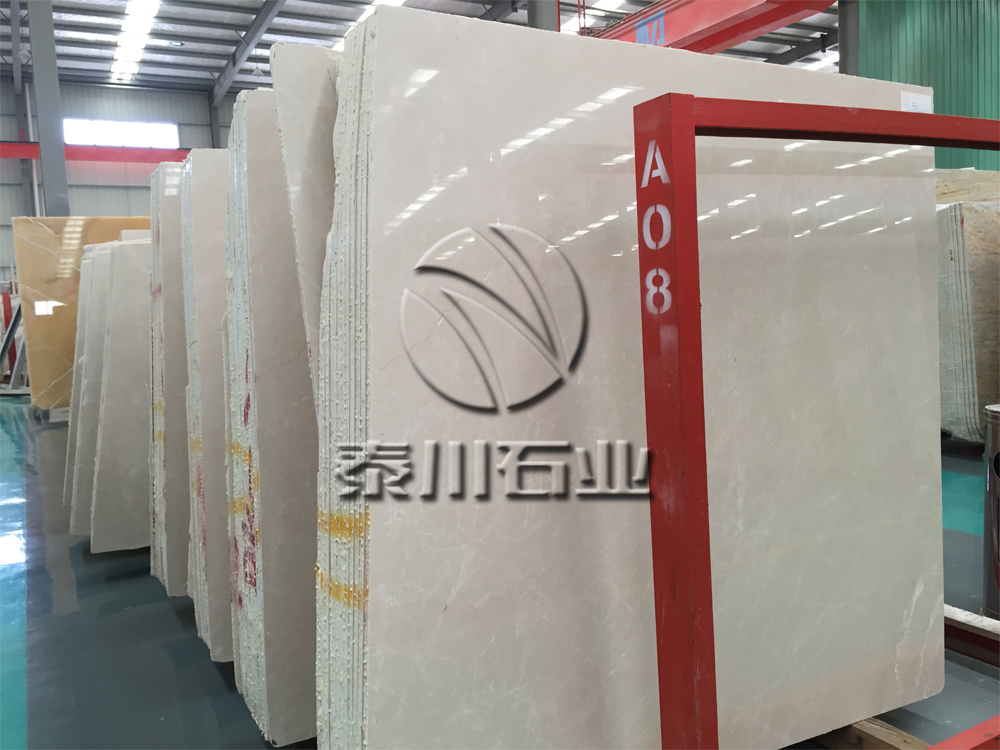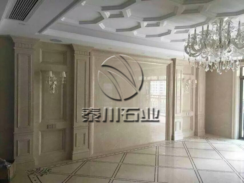 奶油底色,硬度罕見,光度極高,體積密度高,即使作為地板也無可挑剔,是高檔的大理石裝飾品。